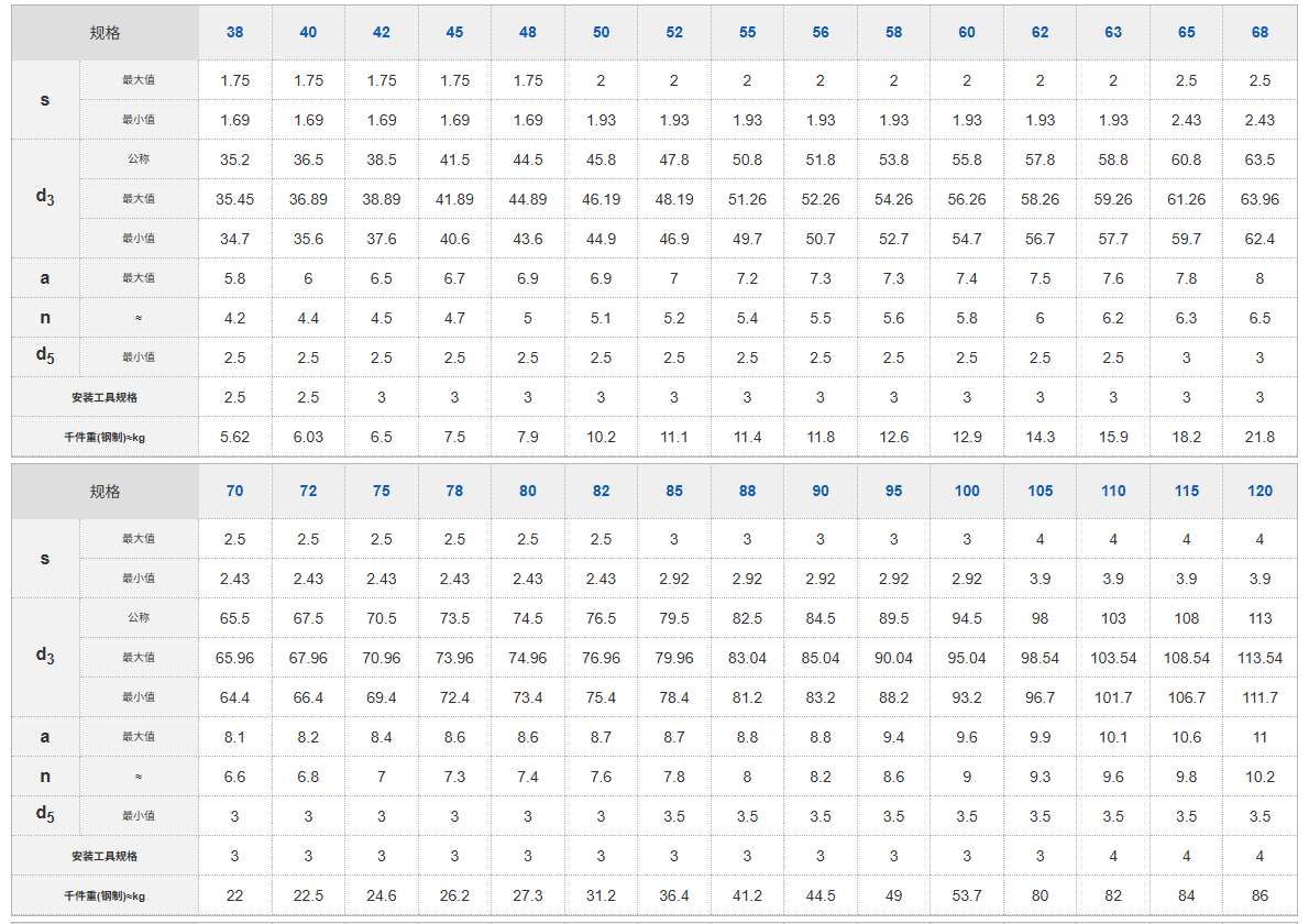 以上尺寸只是常见规格,实际应用中还有更多详细的标准和特殊规格,不同标准体系(如国标GB、德标DIN等)在具体尺寸及公差等方面可能存在细微差异 。在选用轴用弹性挡圈时,需根据实际的轴径尺寸、工作环境、负载情况等因素综合考虑,以确保其能可靠地发挥定位、固定等作用。