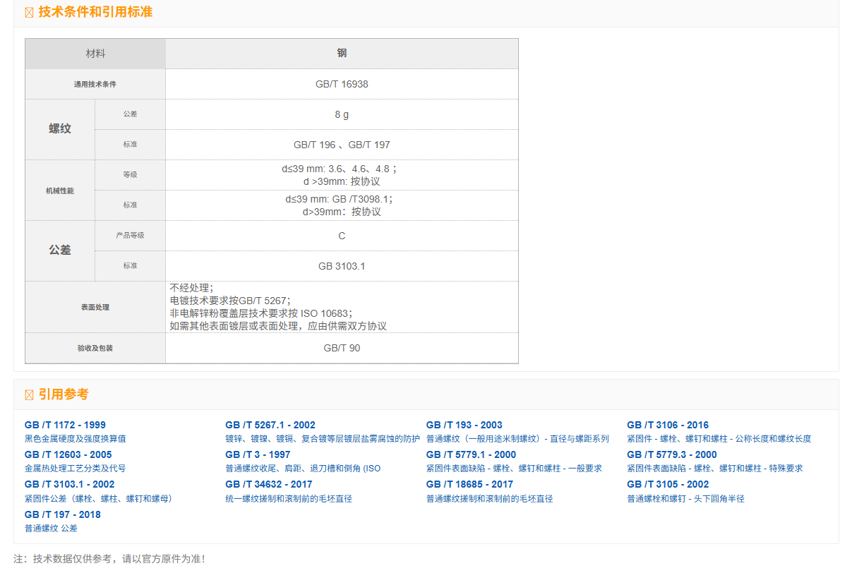 1. 材料:通常采用低碳钢(如Q235、Q345),性能等级分为3.6级、4.6级、4.8级,具体机械性能需符合GB/T 3098.1的规定。