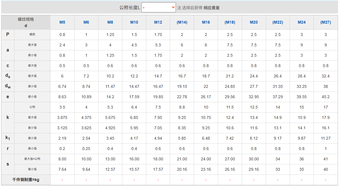 3. 螺纹长度(l):全螺纹设计,长度范围根据螺纹规格不同,例如M6的商品长度范围为10-60mm,M10为16-100mm。
