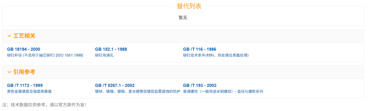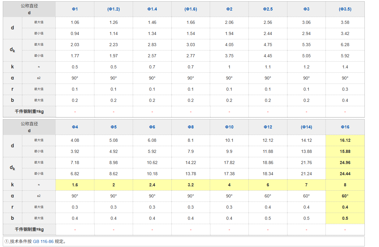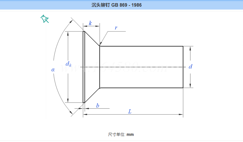 GB 869 - 1986《沉头铆钉》规定了公称直径d = 1 - 16mm的沉头铆钉的相关要求,以下是其材质、硬度等方面的信息: