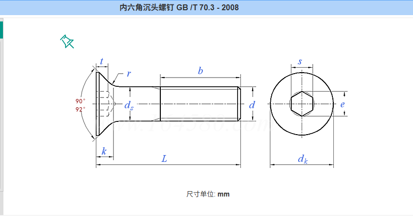 沉头内六角螺栓有多种标准,常见的国标(GB)相关标准为GB/T 70.3 - 2008,其规定了尺寸等参数,以下是详细的标准尺寸信息: