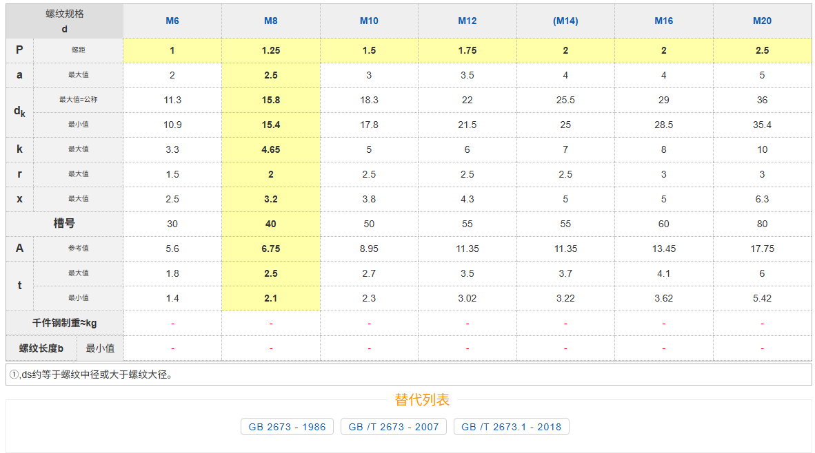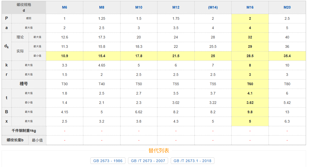 头部直径:随着螺纹规格增大而增大,M6的头部直径(最大)为11.0mm,M8为14.0mm,M10为17.0mm,M12为19.0mm,M14为22.0mm,M16为25.0mm,M18为28.0mm,