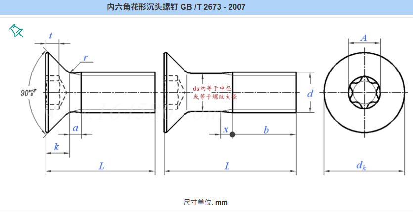 头部高度:M6的头部高度(最大)为3.3mm,M8为4.6mm,M10为5.0mm,M12为6.0mm,M14为7.0mm,M16为8.0mm,M18为9.0mm,M20为10.0mm,M22为11.0mm,M24为12.0mm 。