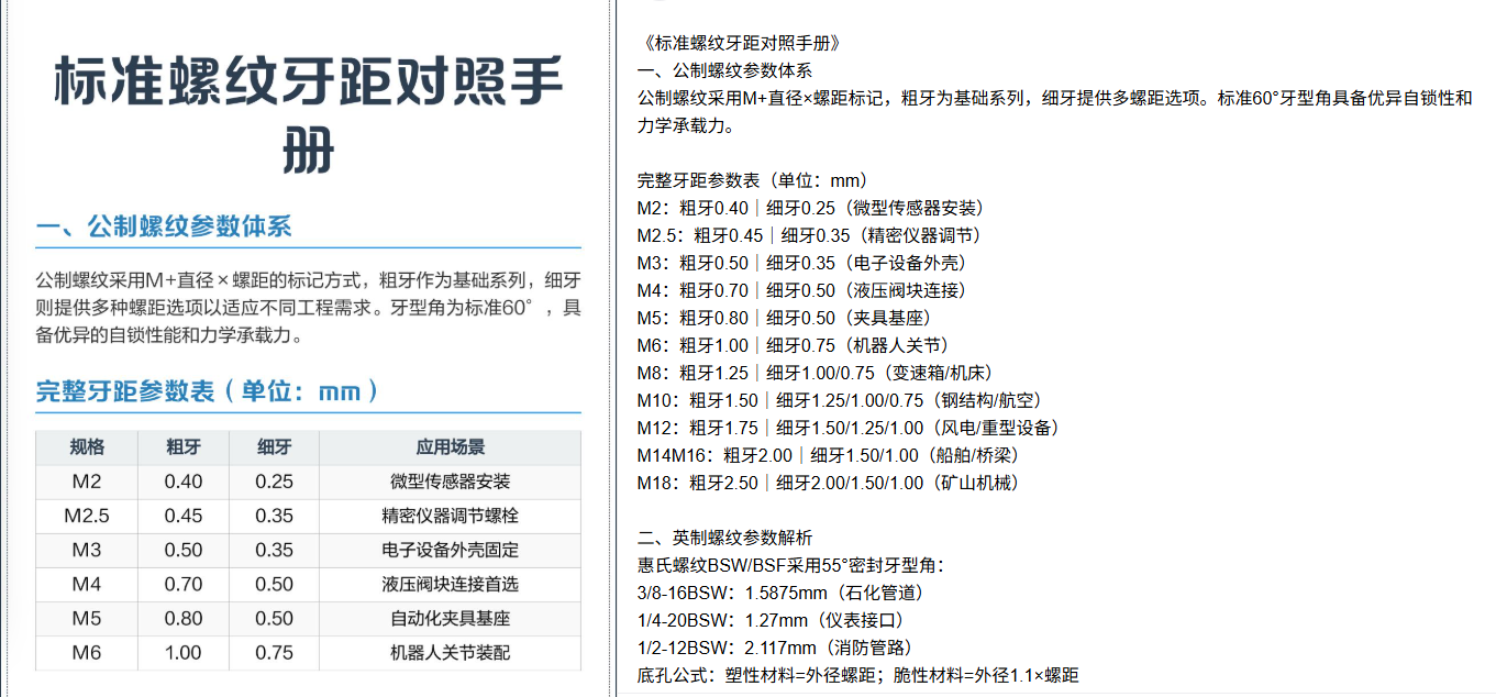 螺距:M8细牙螺纹常见螺距有1.0mm、0.75mm等。1.0mm螺距在实际中应用相对较多,0.75mm螺距则用于一些对螺纹精度要求更高、受力较小或薄壁零件的连接场合。