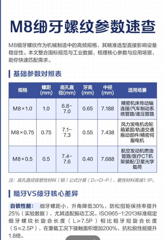 M8螺丝细牙螺纹标准涉及尺寸、公差、标记等多方面内容,以下为你详细介绍: