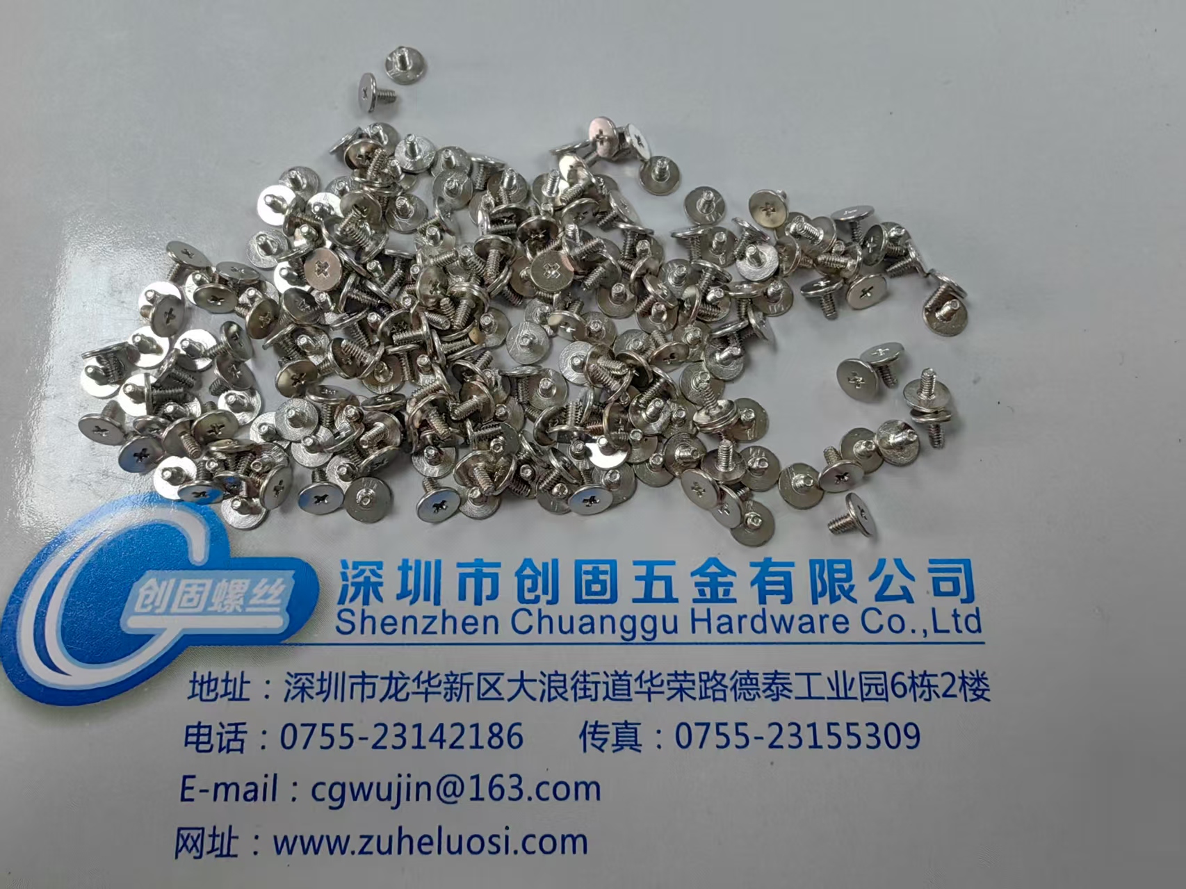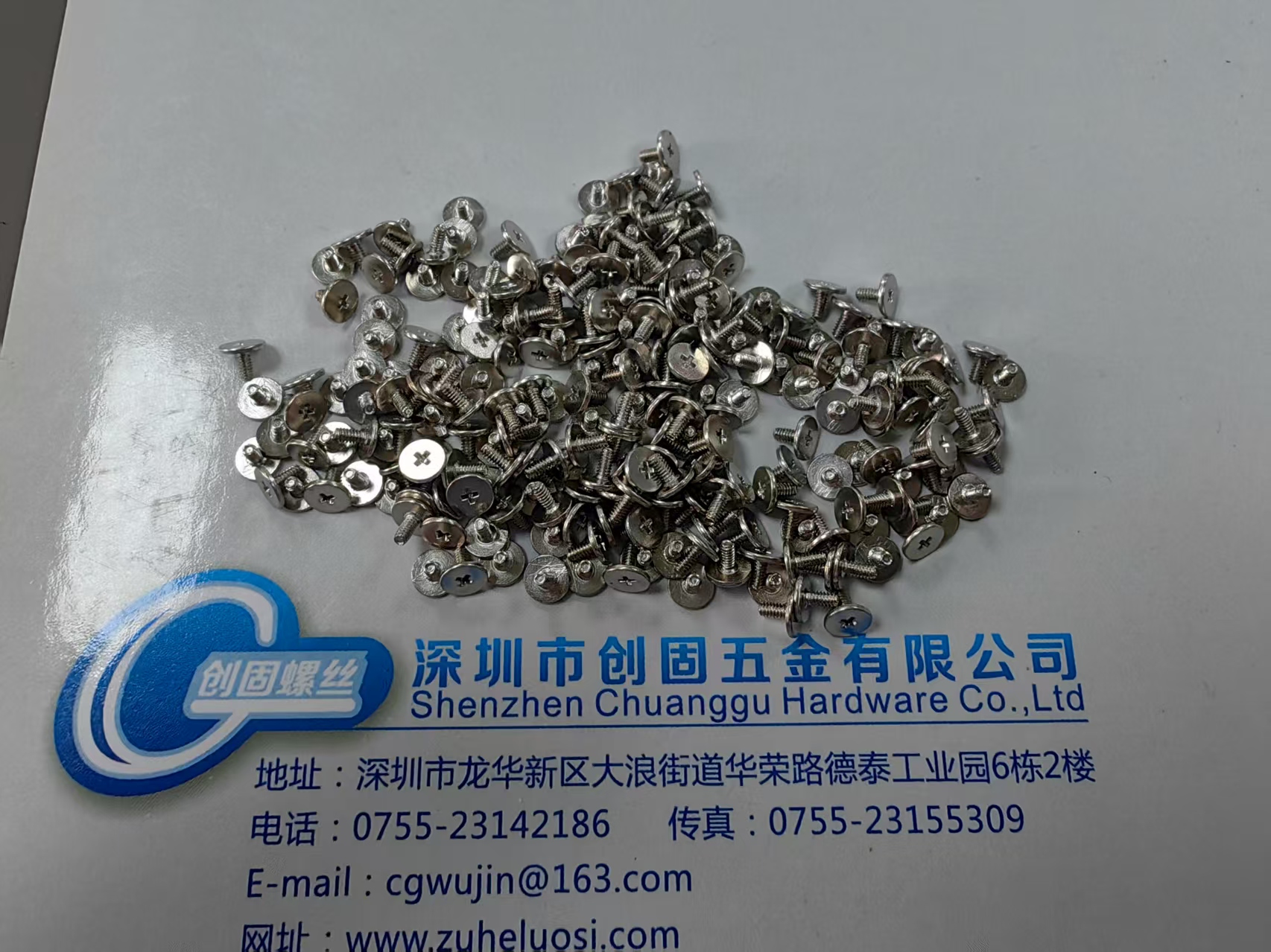 深圳市创固五金厂家专业生产销售非标大头机牙平头螺丝CM1.4*3 头部大小4.5MM 镀镍 联系方式:朱经理 15818603477