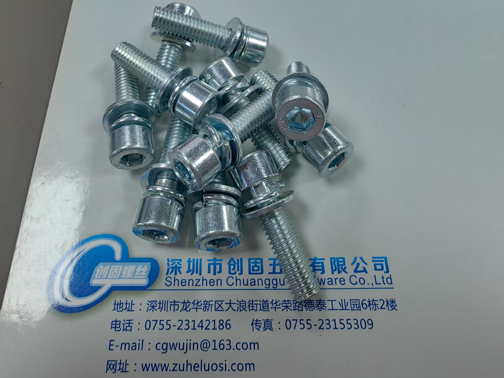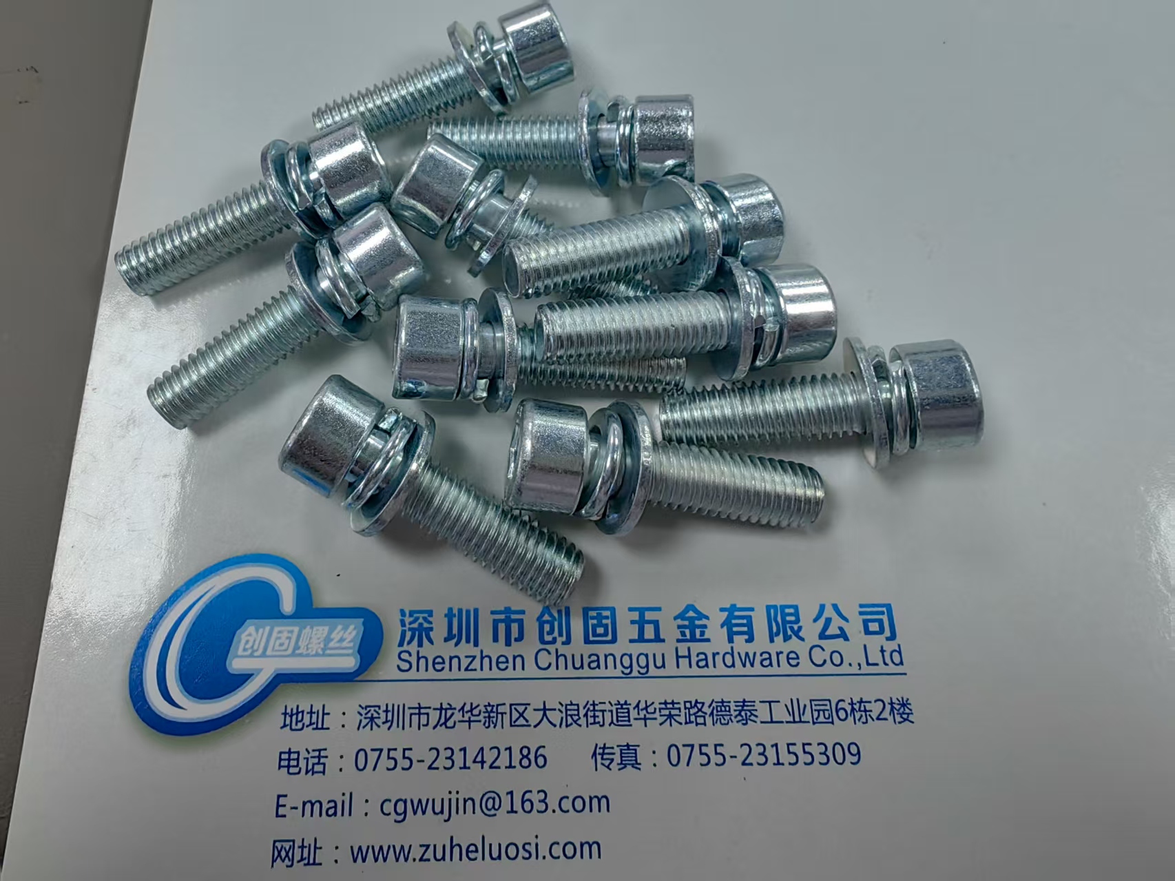 8.8级组合螺钉厂家 深圳市创固五金厂家专业生产销售10B21材质 8.8级圆柱头内六角平弹垫圈三组合螺栓GB70.1 8.8级十字盘头组合螺钉,8.8级十字槽外六角组合螺钉。三合一螺丝生产制造厂家 盘头外六角三合一组合件生产厂商 联系方式:朱经理 15818603477 微信同号 QQ:956914748