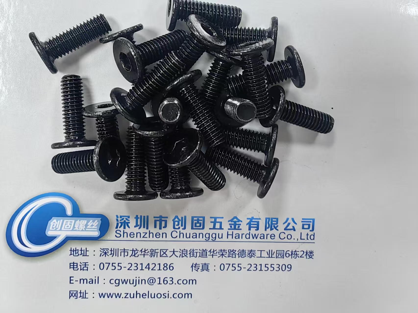 深圳市创固五金厂家专业生产销售SUS304不锈钢平头内六角螺栓 M6*20 电镀黑锌 高温氧化黑 常用规格均有现货。联系方式:朱经理 15818603477 QQ:956914748 微信同手机号。