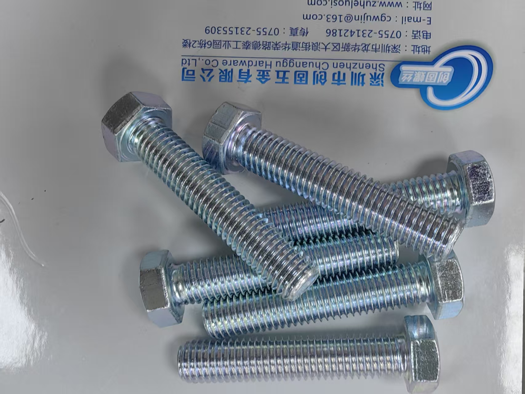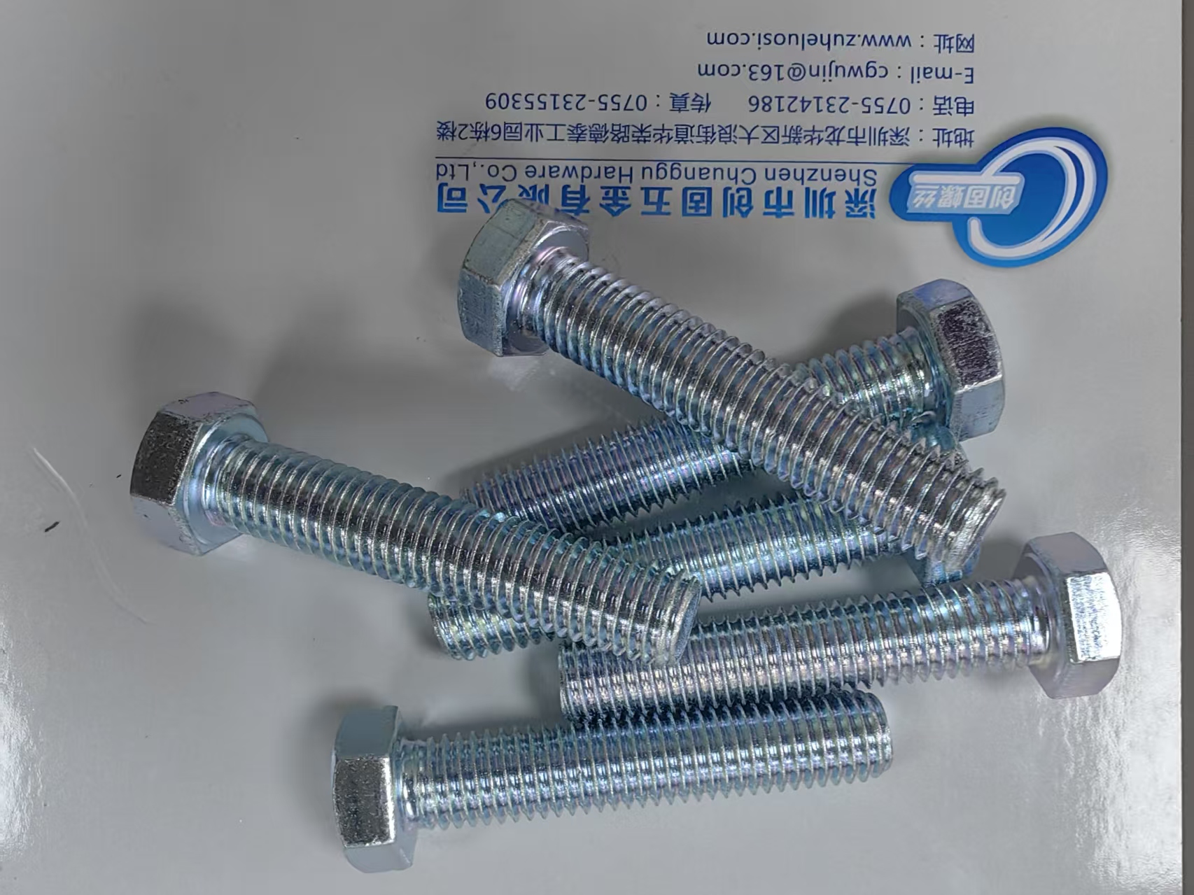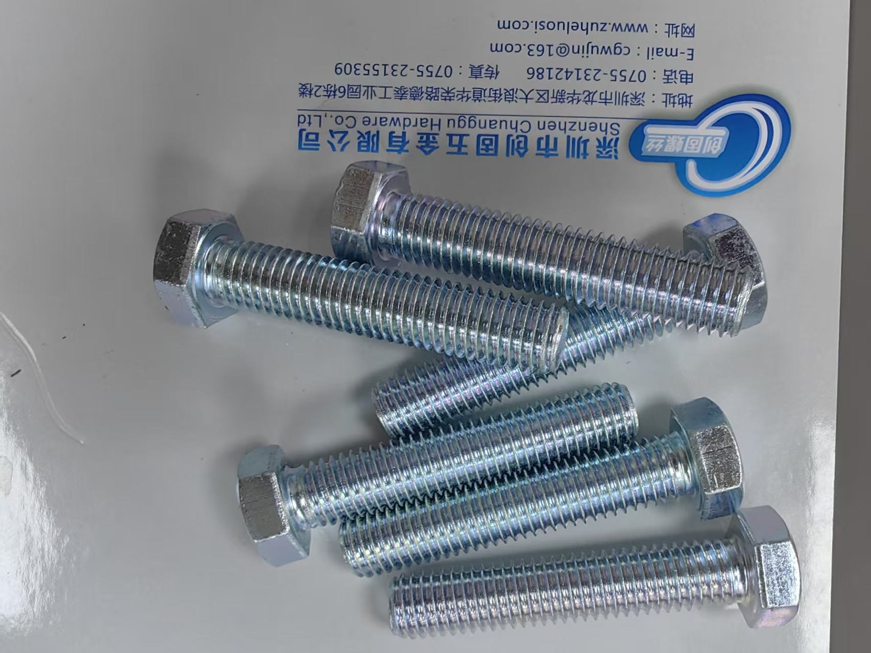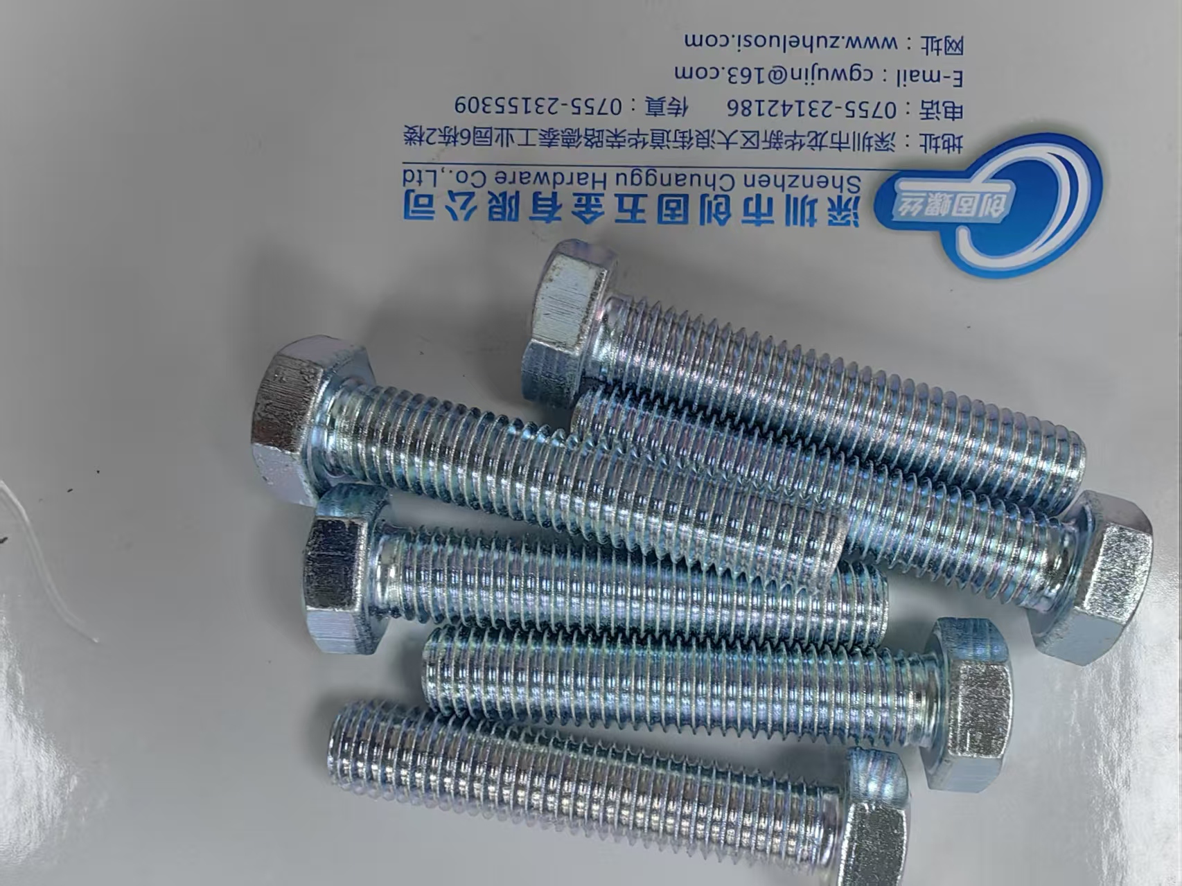 深圳市创固五金厂家专业生产销售镀环保彩锌8.8级六角头螺栓GB5783 M12*60 盐雾48小时以上 常用规格均有现货。联系方式:朱经理 15818603477 QQ:956914748 微信同手机号。