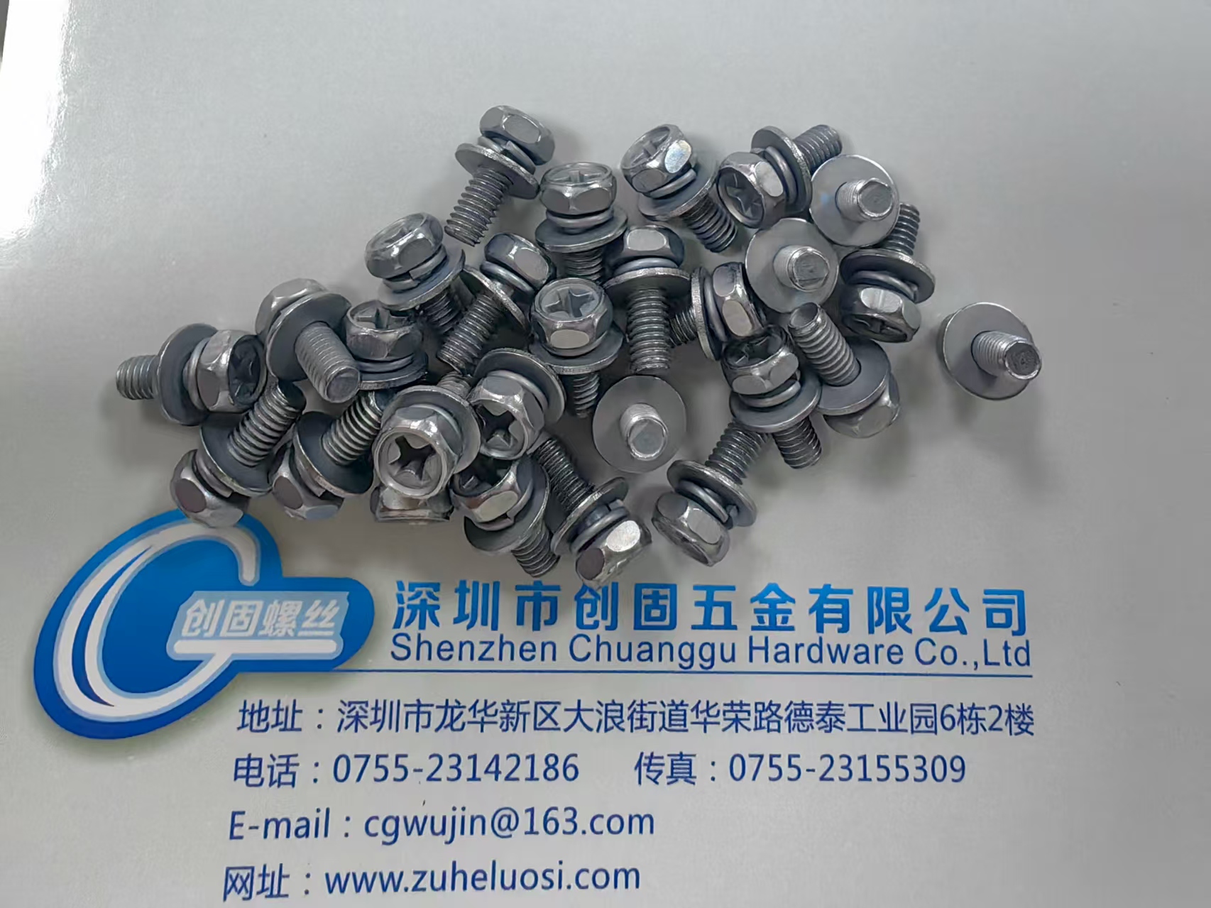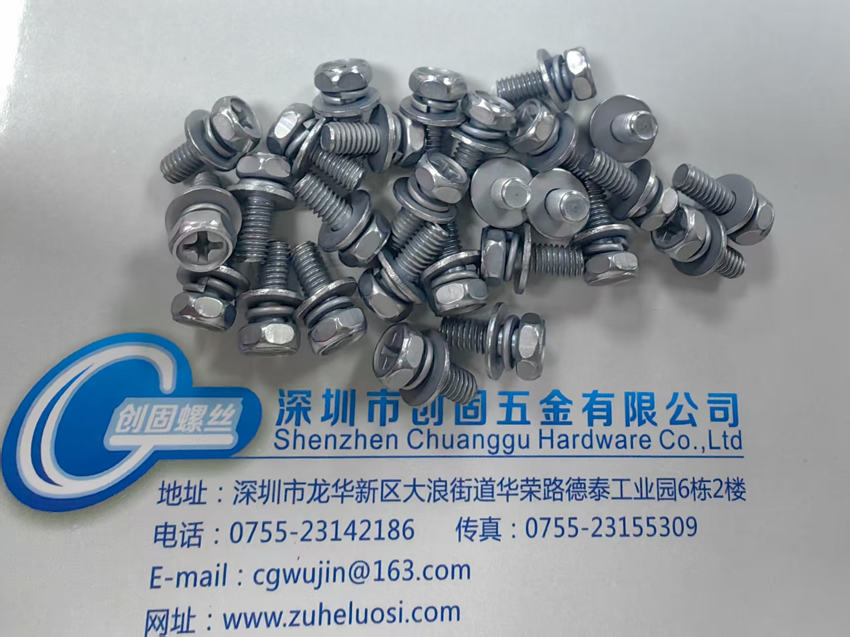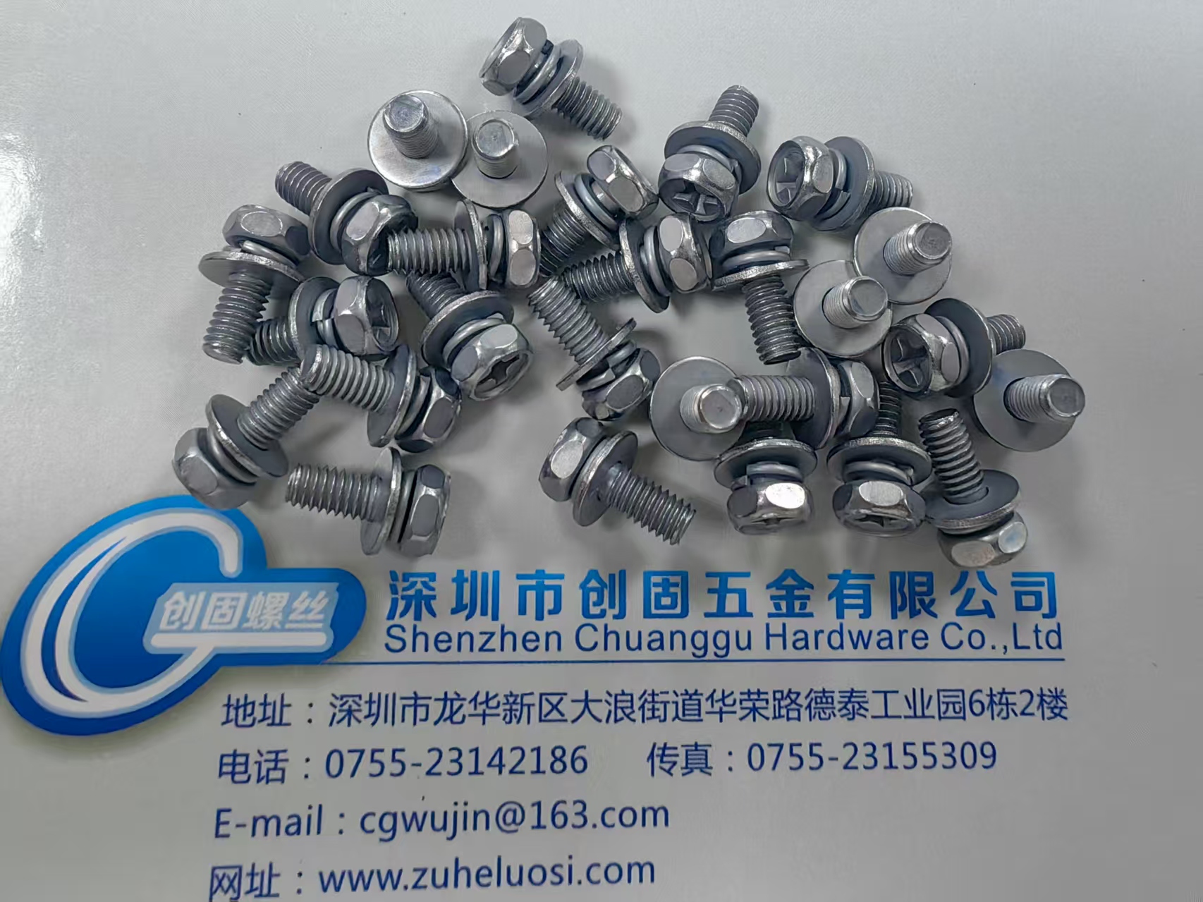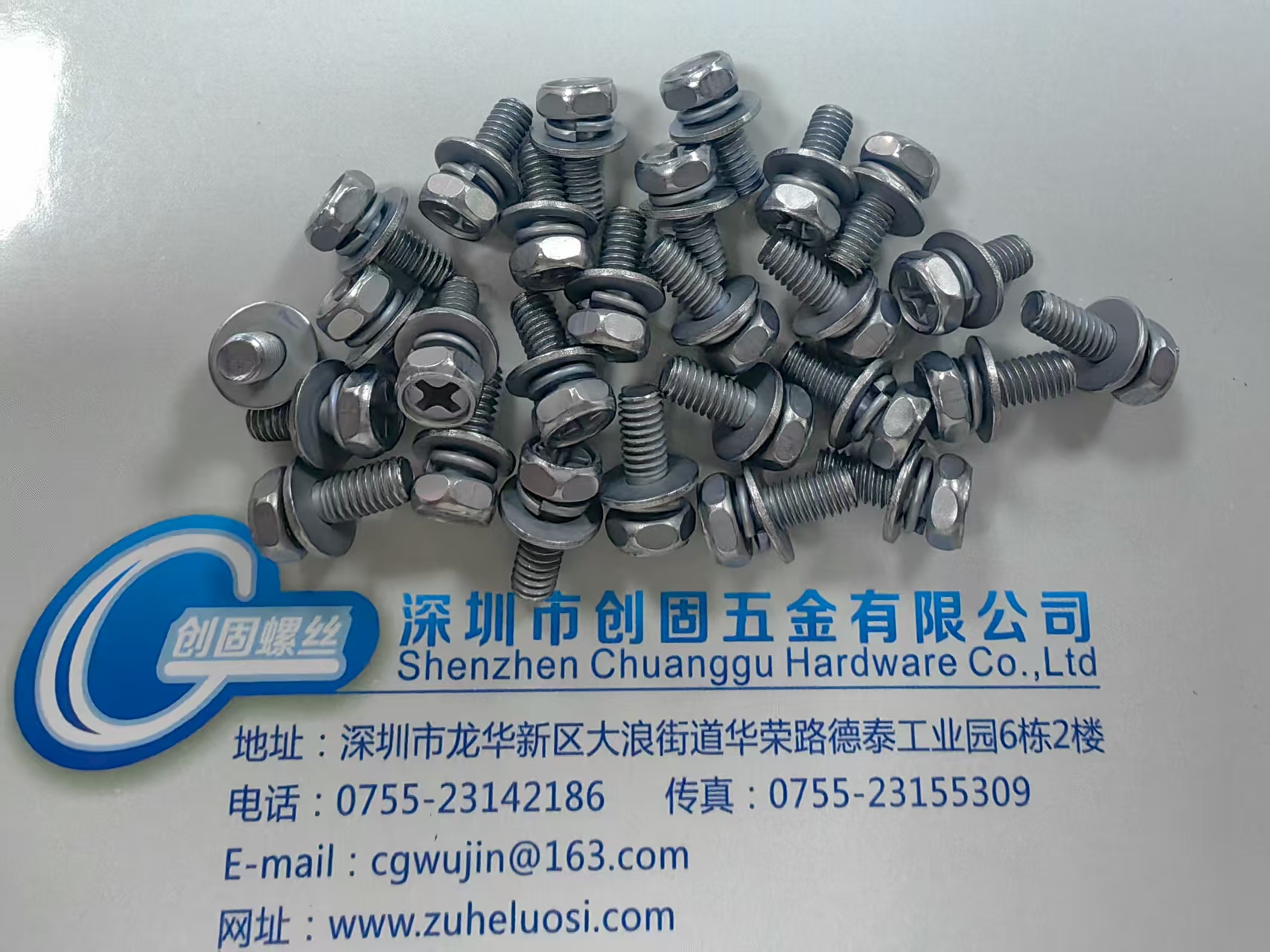 南京8.8级组合螺钉供应商家 8.8级十字槽凹穴六角头弹平垫圈三组合件GB9074.13 M4*10 镀锌镍合金本色 凹脑十字槽六角头弹平垫圈组合件GB9074.13 十字六角组合螺钉制作厂家 外六角三组合螺丝生产厂 深圳市创固五金厂家专业生产销售外六角十字槽弹平垫圈三组合螺钉GB9074.13 M4*10 联系方式:朱经理 15818603477 微信同手机号 常用规格:M4*8 4*10 4*12 4*16 4*20 4*25 4*30 4*35 4*40 4*45 4*50 4*60 4*65 4*70 4*75 等等。