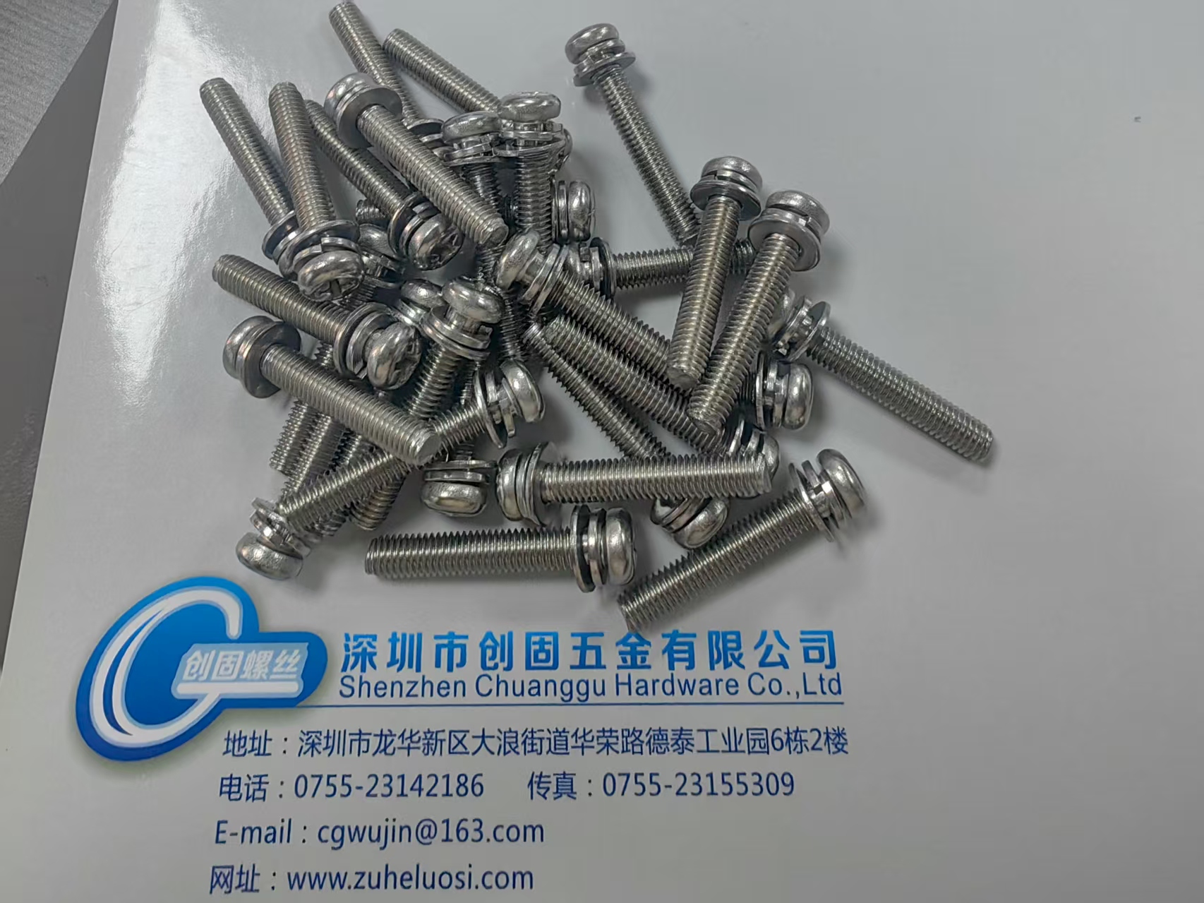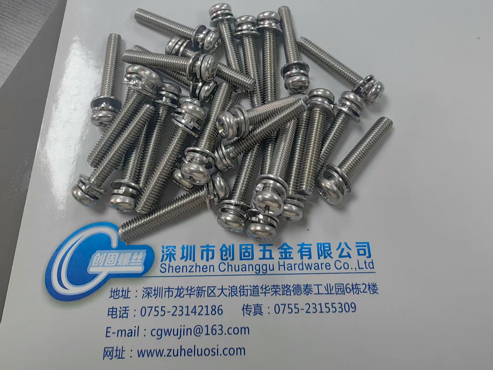 电瓶组合螺丝 不锈钢螺钉弹平垫圈三组合件生产制造厂家 深圳市创固五金厂家专业生产销售304不锈钢三组合件 三组合螺栓 三组合螺钉 国标号有GB9074.8 9074.4 9074.13 9074.17 常用规格均有现货。联系方式:朱经理 15818603477 QQ:956914748 微信同手机号。