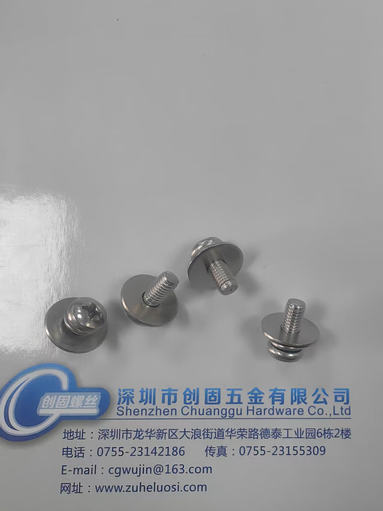 定做定制304不锈钢十字槽盘头三组合螺丝GB9074.8 深圳市创固五金厂家专业生产销售定做定制304不锈钢十字槽盘头三组合螺丝GB9074.8三组合件 三组合螺栓 三组合螺钉 材质有不锈钢304 316 联系方式:朱经理 15818603477 常用规格均有现货 qq:956914748 微信同手机号。