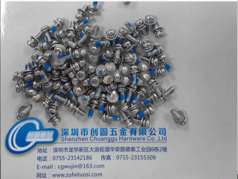 304不锈钢十字槽盘头弹平垫圈三组合螺钉GB9074.8 M3*8 耐落点半胶 深圳市创固五金厂家专业生产销售SUS304不锈钢十字盘头带弹簧垫圈平垫圈三组合件 304弹平垫三组合螺栓304不锈钢十字槽盘头弹平垫圈三组合螺钉GB9074.8 M3*8 耐落点半胶 联系方式:朱经理 15818603477 常用规格有。